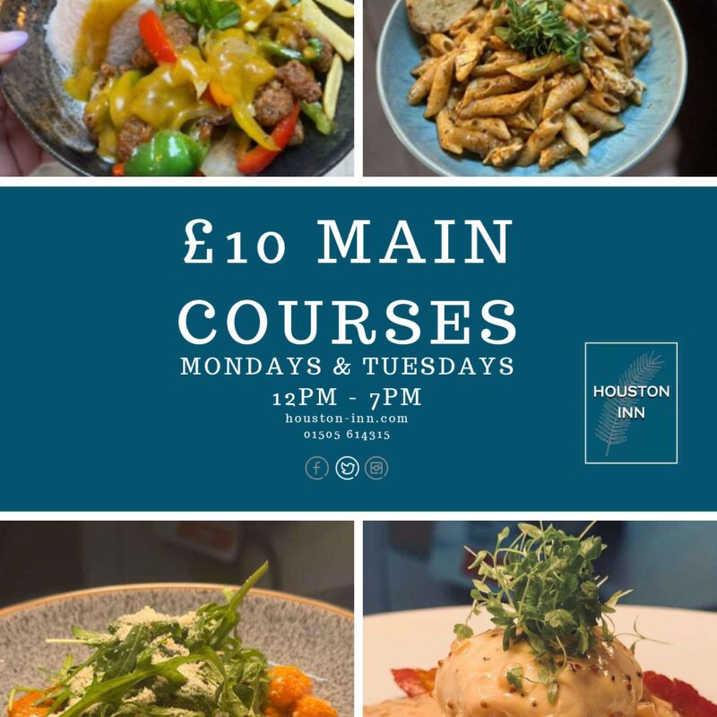 Enjoy classic pub favourites at the Houston Inn, with main courses for just £10...